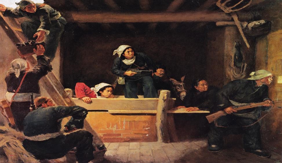 罗工柳,著名油画家,抗日战争期间积极投身艺术创作,以画笔记录历史,弘扬民族精神。《地道战》是其代表作之一,充分展现了他的艺术才华与爱国情怀。对于老一代艺术家来说,他们在创作革命历史画方面的一大优势就在于这一批人基本上都参加过中国革命的具体实践,在思想和情感上对革命历史都怀有普遍的认同,因此在创作过程中他们可以倾注自己全部的理想主义激情。罗工柳的《地道战》正是这样一种情形下的创作,对事件的体验与革命的理想压倒了形式的规定,而在这个基础上表现出来的形式又具有一种历史感。