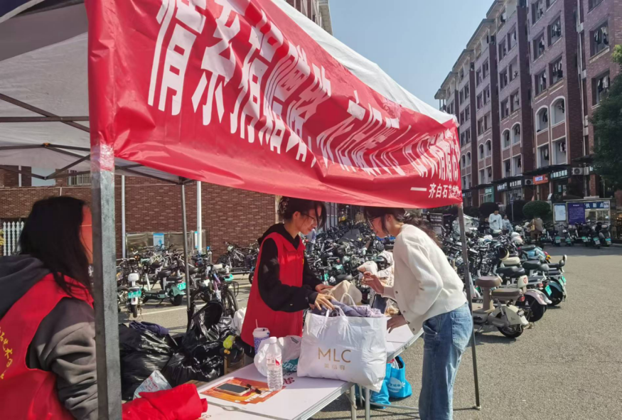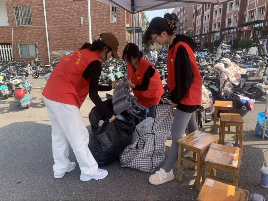 活动前,志愿者们提前准备好了活动物资:宣传横幅、海报和活动传单。在活动过程中她们热情地向广大师生介绍捐赠活动,讲述了旧衣物的用途和公益捐赠对社会的正向影响。活动不仅旨在鼓励大家捐赠衣物,更希望通过这一举措,唤起更多师生投身公益,汇聚爱心,形成“志愿精神”的大潮。
