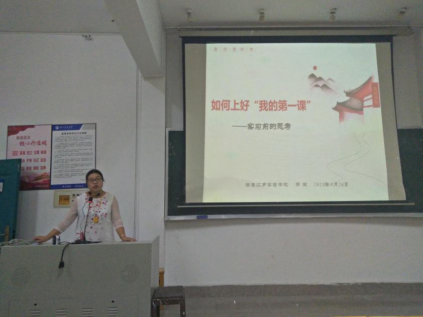 2019年9月26日晚,为了师范专业学生在进入实习学校前了解中学美术教师是怎么上课的,艺术学院邀请湘潭江声实验学校美术教研组组长——邓丽老师在美术楼119教室给即将走上讲台的同学们带来了一堂生动的“示范课”——“如何上好‘我的第一课’”。此次讲座由赵湘学副院长主持,我院的教育实习指导老师和16级美术学专业的90余名同学们认真聆听了讲座。