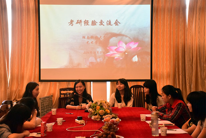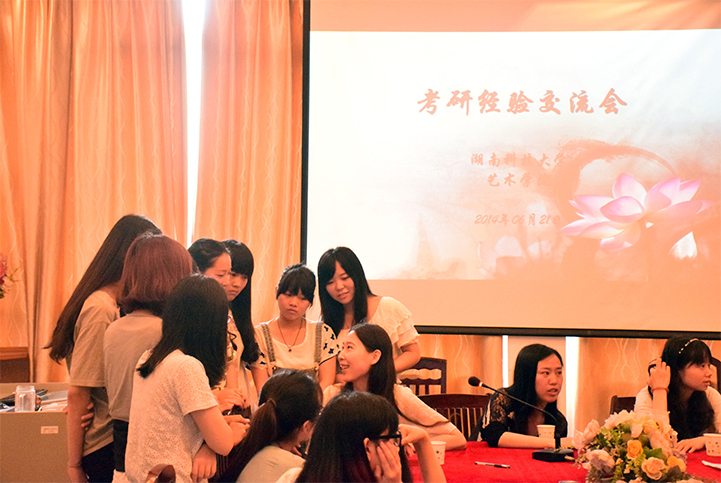 本次交流会请来了考研成绩优异的同学,其中不乏考上本校的研究生,更有考上美院及国外知名大学的研究生前来分享各自的考研经验。大家针对自己准备考研过程中遇到的问题向他们咨询,进行面对面的进行交流,从而更加明确了学习的目标。向各位同学讲述从考试到选择自己导师的重要性,同时从三个方面来传授经验,有一个乐观的起步,同时在学习过程中不能忘了多向他人学习,多汲取经验,另外坚持是关键。有了这些经验的讲授不仅增强了大家的自信心,也让大家更加明确考研要付出更多的努力。本次交流会气氛热烈,大家积极参与。希望通过本次交流会,能让大家在考研准备过程中更加明晰应注意的问题,从而取得好成绩,实现考研梦想。