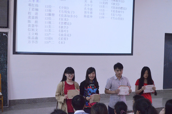 本次作品展在全院广大学生中共征集作品约200幅。经过评委严格评定,评选出一等奖2幅、二等奖5幅、三等奖10幅、优秀奖23幅。在颁奖典礼的最后,罗登辉书记上台总结,对本次作品展提出高度肯定,并表示年轻人有好的想法就要去做,学院会尽量提供平台。希望学生们都能大胆创新,大胆实践。