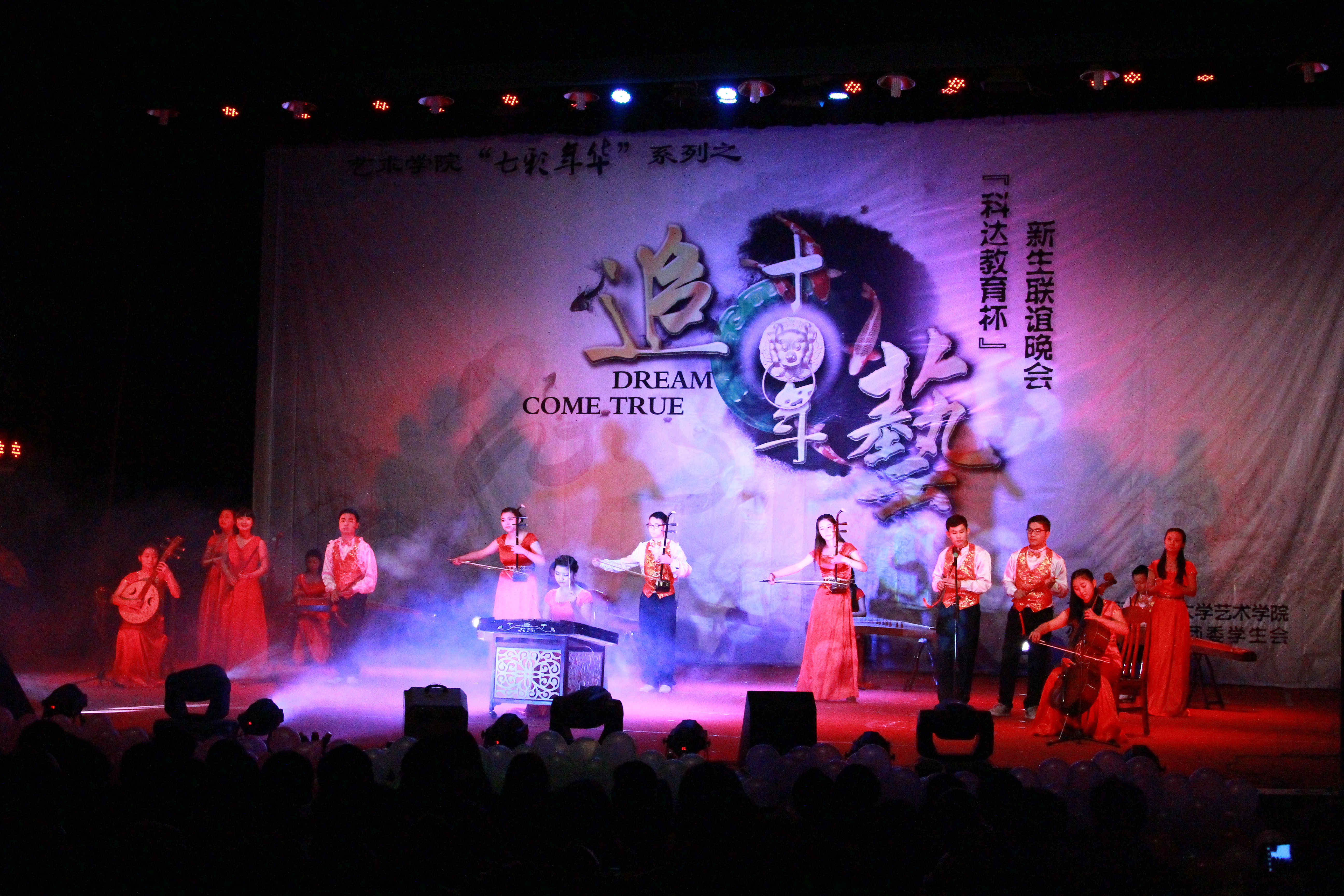 在大家期待的目光中,四位主持人宣布晚会由四个篇章组成:“序•追艺之歌”、“起•古风之美”,“扬•变奏现代”“尾•华年彩梦”,四个篇章各自展现了艺术学院执着探求艺术的精神。本场晚会由喜气洋洋的民乐合奏开幕,从一开始就带来一种欢快愉悦的氛围。晚会的节目一个接一个地呈现在观众们的眼前,本次晚会节目内容非常丰富,除了传统的歌曲、舞蹈、乐器外,更有独特的人声伴奏阿卡贝拉和T台环保服装走秀,这不仅充分体现了我院同学们对专业知识的掌握和灵活的运用,更体现了对艺术和生活的那一份热爱。其中的爵士热舞,歌曲联唱和街舞表演更是使本次晚会达到了一又一个的高潮,同学们热情澎湃,兴致高涨,叫好声此起彼伏。表演者们身心投入,为本次晚会带来了完美的视听盛宴。