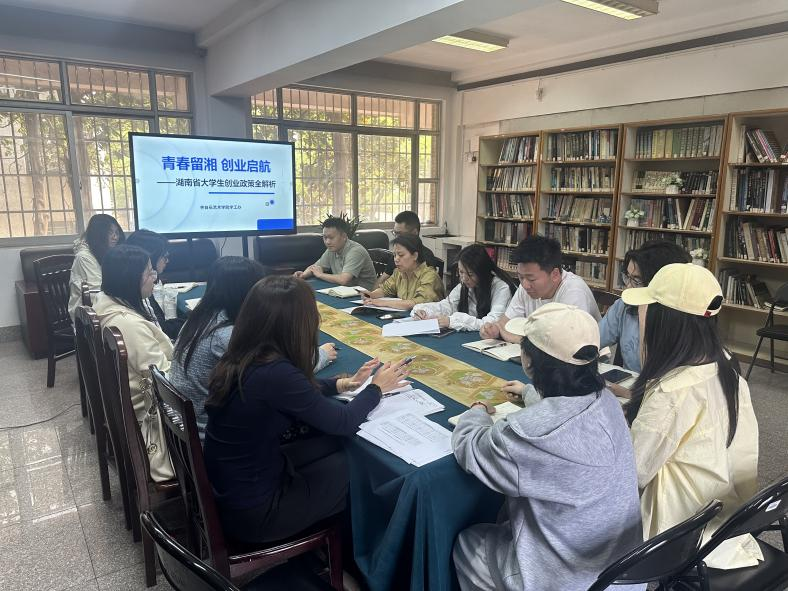 为进一步推动学院创业教育工作,帮助师生全面了解湖南省创业政策,近日,我院在美术楼 117 会议室组织开展湖南省创业政策专题学习研讨会。本次学习活动由院党委副书记詹玮主持,学院青年教师代表、全体辅导员及学生代表参加。
