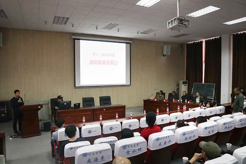 为迎接十三届全国美展,促进湖南版画家们的交流,进一步提高湖南版画在全国的竞争力。4月20日下午,来自全省各地的40余位版画家及我校艺术学院师生齐聚一堂,举行第十三届全国美展湖南版画看稿交流会。看稿会由湖南省美术家协会版画艺委会与AWC万象城娱乐艺术学院共同主办,专家组由中国美协版画艺术委员会委员、四川省美协副主席邝明惠,湖南省版画艺委会主任、长沙师范学院美术与动画学院院长罗湘科,湖南省版画艺委会副主任、中南大学教师卢雨,湖南省版画艺委会副主任、AWC万象城娱乐艺术学院教授文牧江组成,版画艺委会秘书长刘京主持会议。参会版画作者来自省内各高校师生、文化系统作者、创作群体及自由版画家群体。