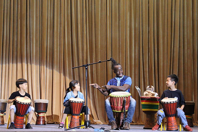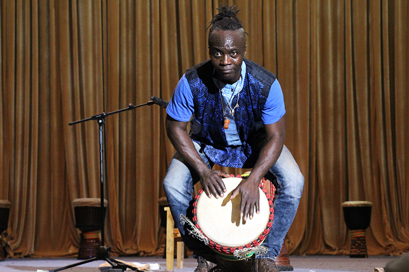 交流会上,Ezipo及他的助教团队向观众展示了非洲竖琴、非洲木琴,非洲鼓等多种乐器,Ezipo将西方古典音乐与非洲传统音乐完美融合,富有张力的表演,活泼可爱、自由自在,又洋溢着充满律动感的艺术气息,让每个人都身临其境,感受到西非曼丁音乐的表现力与多彩性。强烈的节奏、丰富的感情、充沛的活力让我们近距离地了解非洲音乐文化,并深深地被非洲独有的风格与特色所感染。Ezipo热情地与现场观众进行音乐互动,现场洋溢着一片欢乐和谐的气氛。