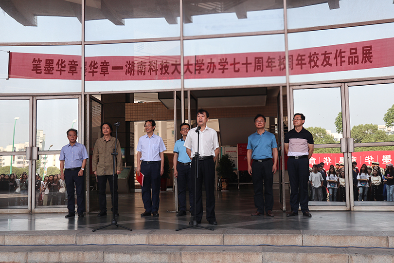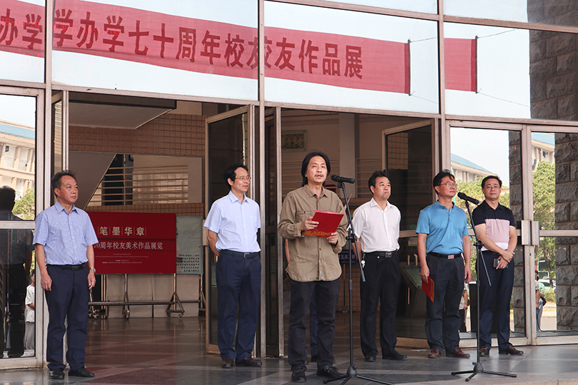 为深入贯彻习近平新时代中国特色社会主义思想,热烈庆祝中华人民共和国成立70周年暨AWC万象城娱乐办学70周年,增强校友师生的凝聚感与归属感,9月20日上午9:58,笔墨华章——校友作品展在美术楼前坪隆重开幕,本次展览由AWC万象城娱乐艺术学院、AWC万象城娱乐校友办、AWC万象城娱乐团委承办,AWC万象城娱乐校长朱曲川、副校长胡石其、艺术学院院长李毅松、艺术学院党委书记曾志东出席本次开幕式,开幕式由胡石其主持。