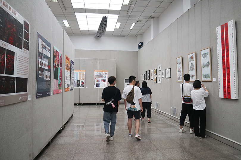 本次展览题材广泛,风格多元,内容丰富。画者通过传统笔墨技法描绘山水花鸟,气势活泼,韵律生动,体现了画者对自然生灵的热爱及恬静淡雅的艺术追求。此外,众多设计作品则体现了艺术源于生活的创作理念,也寄托了画者对于生活的美好向往。展出的书法作品清秀而挺拔,线条苍劲有力,凸显了清逸雅致的国粹之美。