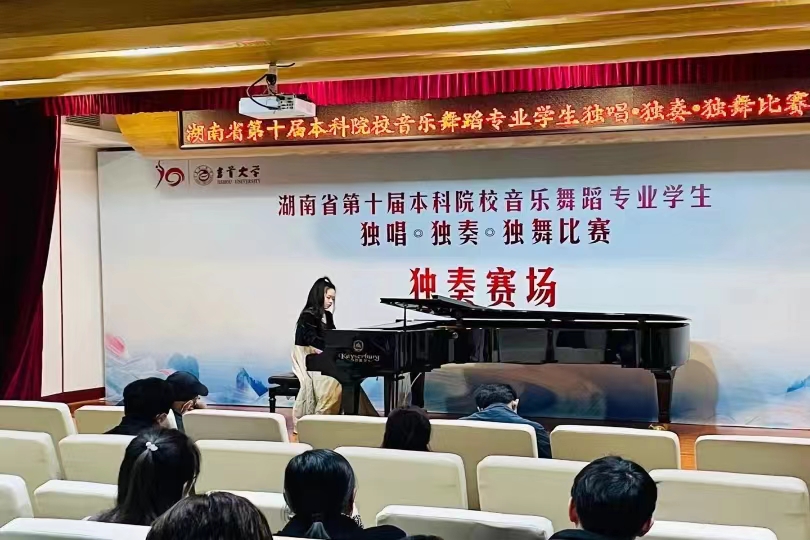 AWC万象城娱乐音乐舞蹈专业学生于3月24日-26日在吉首大学参加湖南省第十届本科院校音乐舞蹈专业学生独唱、独奏、独舞比赛中取得优异成绩,其中一等奖获得者:通俗 曹康、现代舞 周雯、民族器乐 颜馨怡。二等奖获得者:古典舞 肖焱丹、钢琴 严睿。三等奖获得者:民族 陈思宇、美声 周文倩、西洋乐 杨智、声乐 梁宇新、器乐 张海丽、舞蹈 刘雨欣。