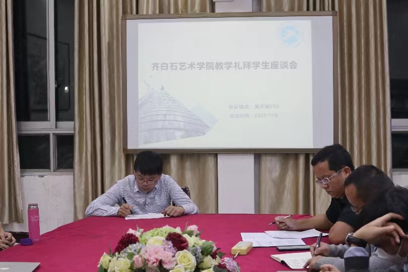 11月8日晚我院于美术楼203召开了“教学礼拜”主题活动学生座谈会。我院党委书记赵湘学、党委副书记屠波、各系系主任、实践中心主任、教务办主任、学工办主任、以及全体辅导员出席。会议由党委副书记屠波主持。