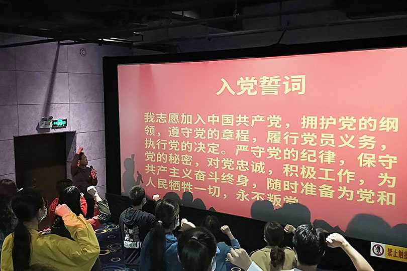 艺术学院党委书记曾志东介绍了《半条棉被》故事的历史背景,结合当前政治形势,要求全体师生党员坚定理想信念,鼓励大家在工作与生活中充分的发挥党员先锋模范作用,并带领大家重温入党誓词。