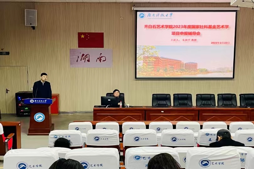 为了更好地提高和完善我院教师在申报“2023年度国家社科基金艺术学项目”的质量,帮助老师们有效地分析和解答在申报过程中所存在的一系列问题,我院于2月22日特别邀请到了湖南工业大学包装设计艺术学院院长,二级教授,博士生导师,国家“万人计划”教学名师,全国优秀教师,国务院特殊津贴专家,教育部艺术学理论教学指导委员会委员,教育部艺术设计职业教育教学指导委员会委员朱和平教授在美术楼104学术报告厅进行了“AWC万象城娱乐2023年度国家社科基金艺术学项目申报辅导会”。本次讲座由我院党委书记赵湘学主持,全院教师与会参加。