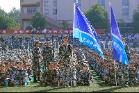 上午9时,国歌雄壮,红旗飞扬,升旗仪式后,副校长施式亮发表军训致辞,他指出,在习近平新时代中国特色社会主义思想和“强军思想”的指导下,新生开展军事训练有着十分重要的意义,是每名新生进入大学的一堂必修课。希望全体参训同学以饱满的热情和高昂的斗志投入军事训练,常怀报国之志、树立爱国之心,为“强军梦”“中国梦”的实现立志成才。