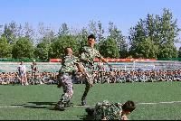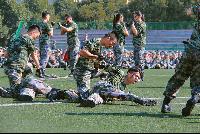 最后,全体师生观看了军训团教官们带来的队列会操和格斗表演以及安全信息队的应急棍术表演。整齐的动作、威武的口号、精彩的表演,赢得了阵阵掌声、声声称赞。而在这掌声里,18级新生为期12天的军训终于拉开了序幕。