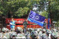 今天的训练科目是齐步走及跑步训练