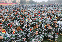 军训虽然即将迎来尾声,一杯姜糖水,暖着的不仅是身体还有他们的内心。喝完姜汤与热水,新生们脸上洋溢着幸福的笑容,几天下来的军训成果印照在了每一位新生脸上。整齐的队列,坚定的步伐,嘹亮的口号... ...每一个突出的表现都在回馈着他们的努力和汗水。