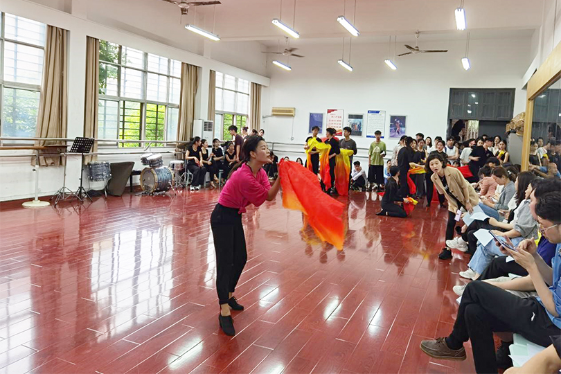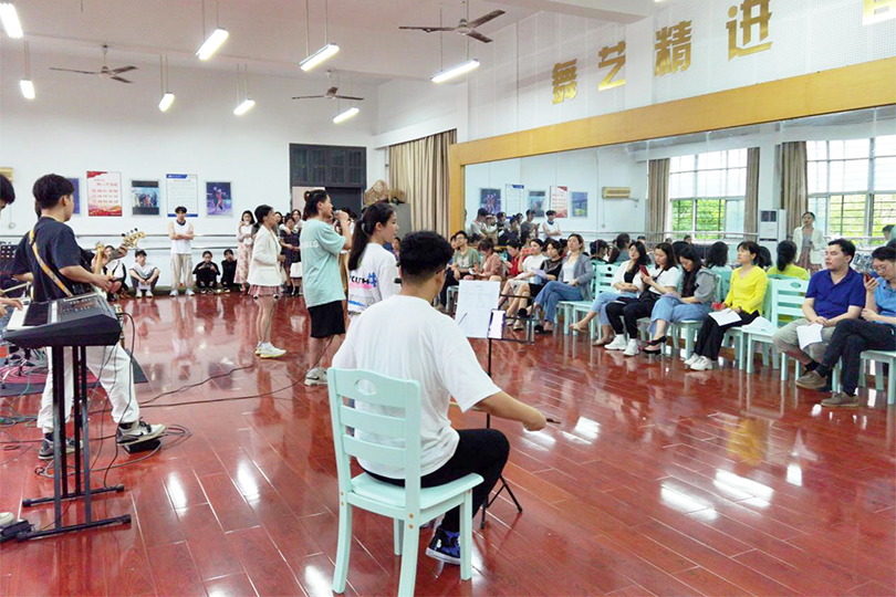 两次指导活动由支部书记熊晓辉策划,音乐系党员教师(副系主任)杨姝老师主持,全体党员教师们参加现场指导。副系主任杨姝老师就整体节目提出了修改意见,建议每个节目增强形式感和内容的情感丰富性,能用极强感染力歌颂祖国歌颂科大,展现高质量的专业水平。支部按照节目单实行“一对一”教师指导负责制:组织委员王彦桀现场指导民乐合奏《凤凰于飞》;支部副书记张然、宣传委员李佩蓉现场指导舞蹈节目《多彩中华》、党员教师张苡指导乐队节目《龙的传人》;党员教师赵琴现场指导声乐节目《红歌联唱》。