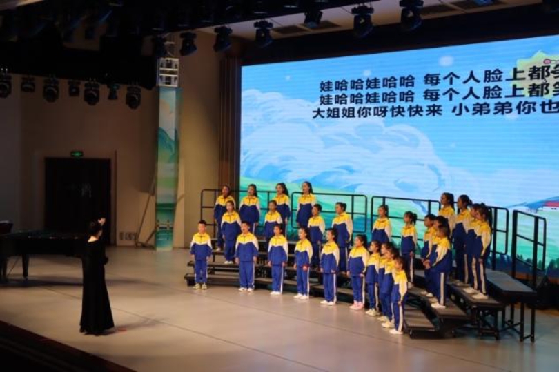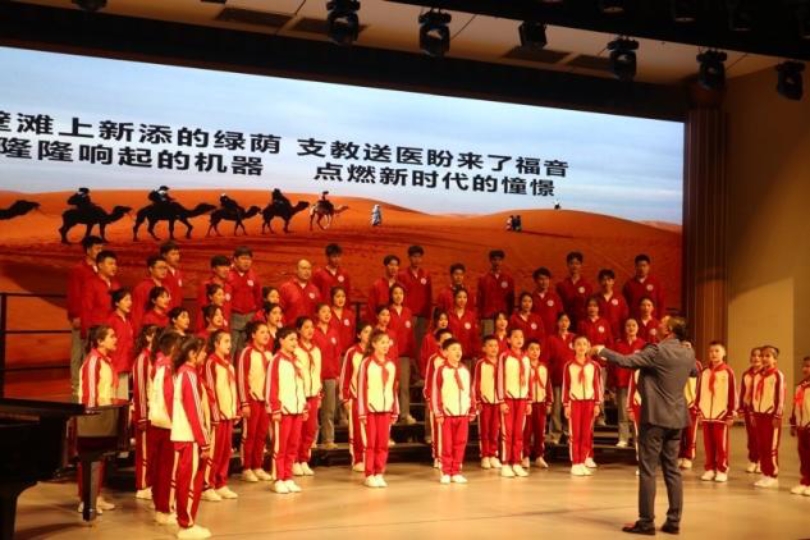 首先是洞口县永发“向日葵”童声合唱团带来的《娃哈哈》,这是一支乡村儿童合唱团,在各界领导的关心支持下,在志愿者老师、学校老师的悉心培育下,孩子们多次登上市级、省级舞合,并取得优异成绩。接着鄯善县阿曼夏学校“红石榴” 合唱团带来的《吐鲁番的葡萄熟了》和《古丽 古丽》。阿曼夏学校位于美丽的库木塔格沙漠之畔,这儿的孩子们每一个人都具有与生俱来的音乐韵律。祁东县启航留守儿童合唱团带来歌曲《我有一个梦》,此团成立于2017年4月,首批招募了66名留守儿童,由王育霖教授担任留守儿童合唱团团长,带领“心与馨”志愿支教服务队免费为孩子们培训。“心与馨”合唱团为大家献上《唱支山歌给党听》、《 新时代的我们》。此团成员均来自我院音乐系学生,这些学生专业突出、真诚热心并且对支教事业富有热情。最后所有合唱团一起合唱《一起向未来》,稚嫩的歌声唱出了孩子们对美好未来的向往。