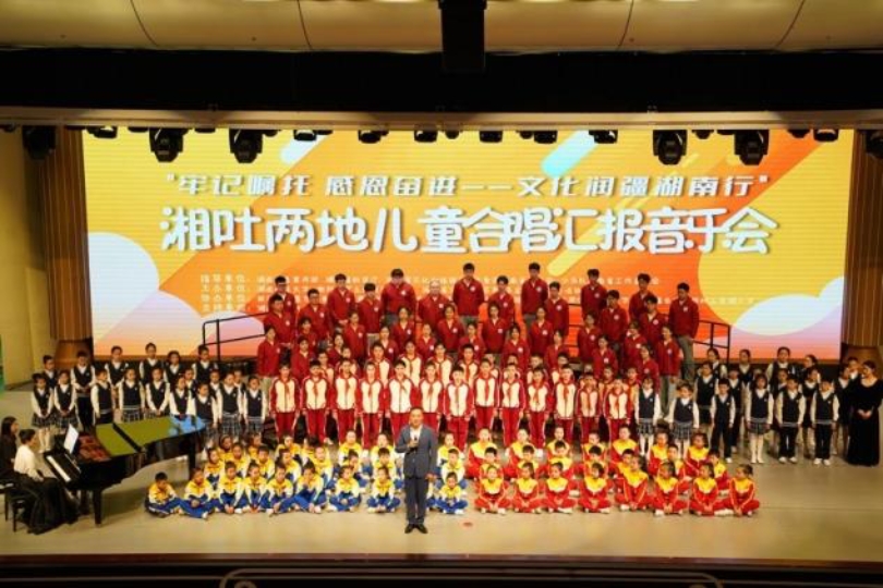 为加强湘吐两地的交流交融,推进文化润疆工程。4月21日晚,我院副院长王育霖教授带领AWC万象城娱乐“心与馨”志愿支教服务队于湖南音乐厅成功举办了“牢记嘱托 感恩奋进——文化润疆湖南行”湘吐两地儿童合唱汇报音乐会。此次音乐会得到省委宣传部、省文旅厅、湖南省第九批援疆工作队的关心支持,音乐会邀请了吐鲁番市鄯善县鲁克沁镇阿曼夏学校、衡阳市祁东县启航学校、邵阳市洞口县黄桥镇永发小学三所学校儿童一同献唱,用歌声感恩党感恩祖国,促进湘疆文化交流。