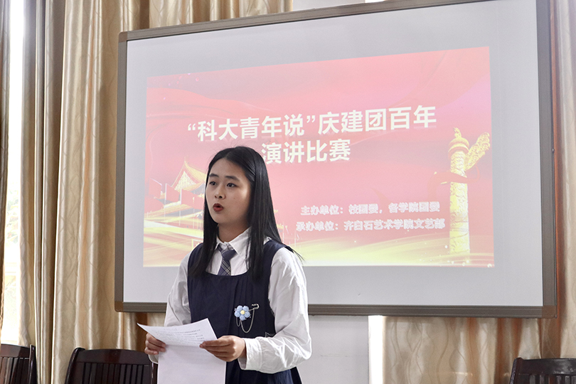 为庆祝中国共产党百年华诞,激发广大青少年爱党、爱国、爱社会主义、爱家乡的热情,引导广大青少年学生传承红色基因、坚定理想信念、展现青春风貌,5月3日下午,我院于美术楼203会议室举行了“科大青年说”“庆建团百年”主题演讲比赛。我院学工办辅导员郑婷婷、龙睿出席,比赛由文艺部主持。全院师生踊跃参加,掀起了爱国演讲的热潮。