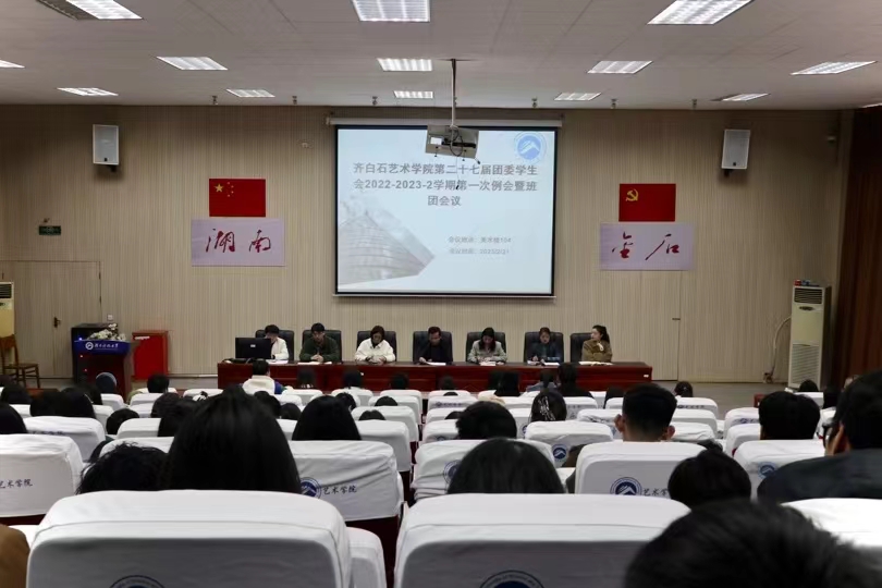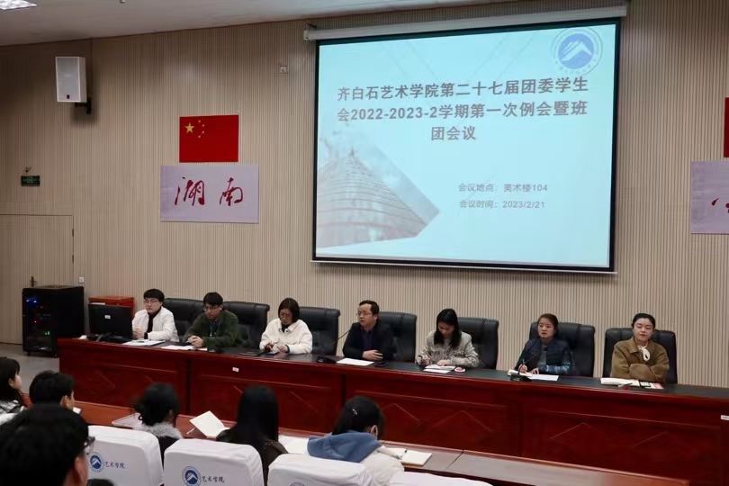 为加强齐白石艺术院学生会新学期工作的展开,明确各部门工作的部署。2月21日下午我院于美术楼104报告厅召开了第二十七届团委学生会新学期第一次例会暨班团会议。院党委副书记屠波,学工办主任钟赛,组织员谭君,学院团委书记彭雅婷,兼职辅导员李雨恒及学院新老师杨燕、王杰出席本次会议,全体学生干部参与。