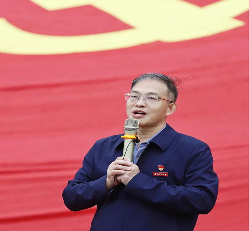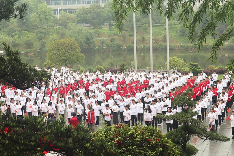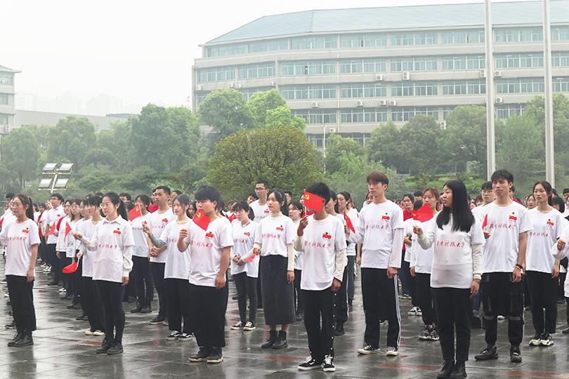 在领誓人的带领下,大家排列整齐肃穆而庄重地面对党旗宣誓。校党委书记唐亚阳发表讲话,号召大家发挥党员模范作用,不负青春韶华,投身于学校高水平大学建设当中,投身于湖南省“三高四新”战略中去,以优异的成绩向建党100周年献礼。同时他指出要坚持“四个服务”的发展方向,把学校发展方针同我国发展的现实目标和未来方向紧密联系在一起。最后,艺术学院合唱团献唱《唱支山歌给党听》。伴随着悠扬婉转的旋律,同学们挥舞着手中的党旗,坚定而动情地跟唱,表达出赤诚的爱党之情,为活动画下了完美的句点。