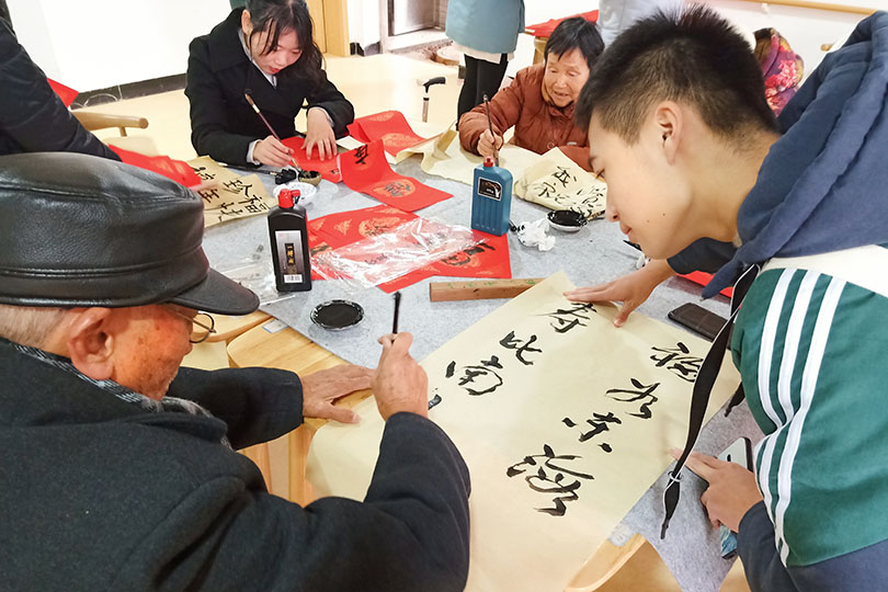 早在11月底,同学们就为此次活动做了充分的准备,大学生书画社成员搜集春联、写春联,同学们将对老人们的温馨祝愿寄托于春联之中,并为老人们贴好春联与福字。“新桃换旧符,送暖入屠苏。”贴完春联后,同学们和老人自由亲切地交谈,同学们认真倾听老人们的个人经历,深入了解了老人们在敬老院的生活日常,同学们也将自己生活中的趣事和老人们进行了交流。同学们的到来,给敬老院的老人们带去了欢声笑语,把温暖送到了每位老人的心坎上。离别之际,同学们感到非常不舍,并给老人们送上了自己最诚挚的祝福。最后在温馨愉悦的气氛中本次活动走向尾声。