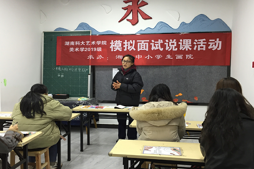 为进一步加强与基础教育对接,彰显我院美术学专业特色优势。12月3日上午,艺术学院美术教育模拟面试说课竞赛活动在湘潭市中小学生画院成功举行,湘潭市教科院美术教研员邓宏组织,我院带队老师王亚楠以及19级美术学的51名同学参与了此次活动。