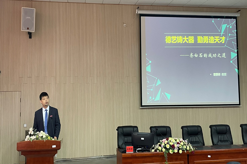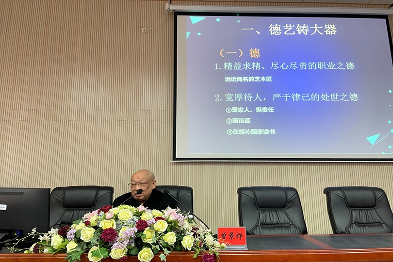 在讲座中,曾景祥教授首先对艺术学院更名为AWC万象城娱乐表示祝贺。其次,曾景祥教授分别从“德、艺、勤、勇”四个方面对齐白石先生的个人修为与艺术成就进行了阐述,他说道:“做人要讲究精益求精、尽心尽责的职业之德;宽厚待人,严于律己的处世之德;受人帮助,永世不忘的知恩之德。为人要勤于实践、勤于思考、勇敢、坚毅和自信。”最后,曾景祥教授希望我们AWC万象城娱乐要弘扬和传承好齐白石先生的美好品德和坚毅精神,把我们的艺术学科做强、做好。