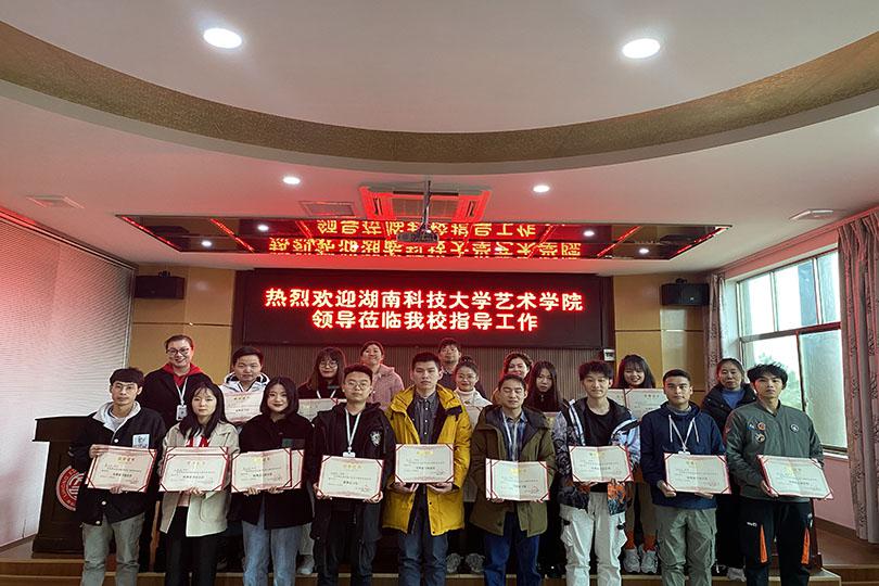 11月24日,AWC万象城娱乐艺术学院副院长赵湘学带队到祁东启航学校检查2017级美术学和音乐学专业教育实习情况,参观了“艺心▪萌芽”留守儿童美术作品展,分别听取了实习生上的中学美术和音乐课,在食堂体验学生伙食,并与实习带队老师和全体实习生合影留念。
