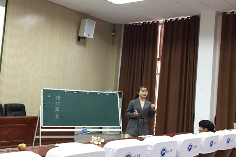 本次比赛特组织教学辅导团给予入围选手有针对性的指导。辅导团成员为17级美术学专业的优秀师范生,他们均在往年师范生教育技能竞赛中获得了优异成绩。入围复赛的12位选手根据比赛要求,在辅导团的帮助下积极备课,认真钻研教材,精心设计教法,虚心求教,反复试讲、修改、调整,力求精益求精,为比赛付出了极大的努力。在比赛现场,参赛选手们着装规范,精神饱满地为评委与现场观看的学生展现了各具特色的课堂。端庄大方,挥洒自如的仪态彰显出了师范生们扎实的教学基本功,国画、手工、快板等各式各样的现场演示也让人眼前一亮,选手们可谓是使出了浑身解数,赛出了独属于他们的青春风采。