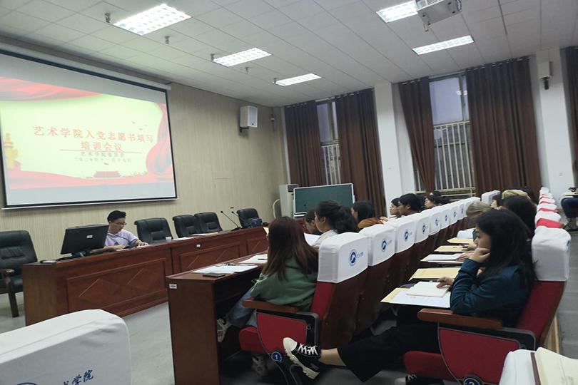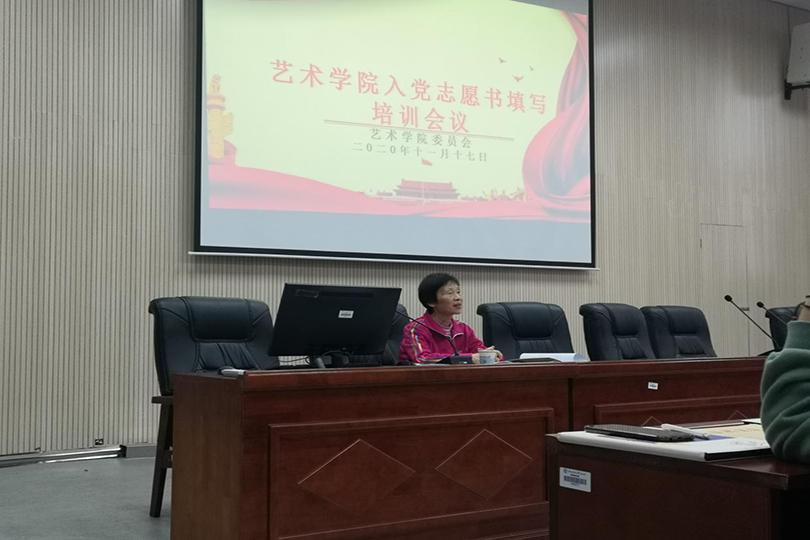 2020年11月17日,我院在美术楼104会议室召开入党志愿书讲解会议。出席会议的有校离退休处马爱云老师,艺术学院辅导员麻琪方老师,以及24名拟发展党员。