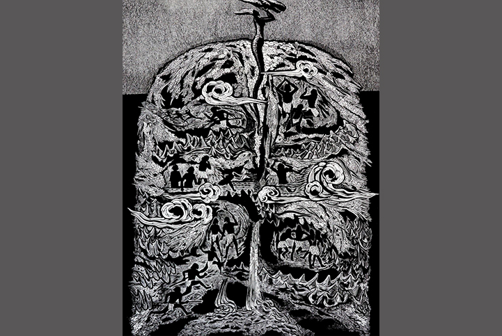 今年五月,我院13级教学美术专业的研究生刘胜文作品《原古的呼唤》在江西第八届青年美展喜获金奖。作品标题取自歌曲《青藏高原》,这幅创作借用我国远古的神话和原始人对生活的渴望追求,展现了一个貌似开天辟地的感觉,思想内容是积极的,通过一个大尺寸的安排,将诸多内容进行整合,构图简洁大方,意在唤起观众对我们国家的古老文明的传承和发扬。