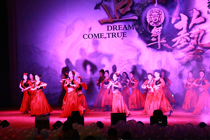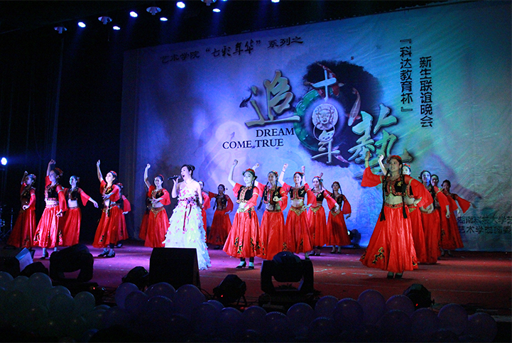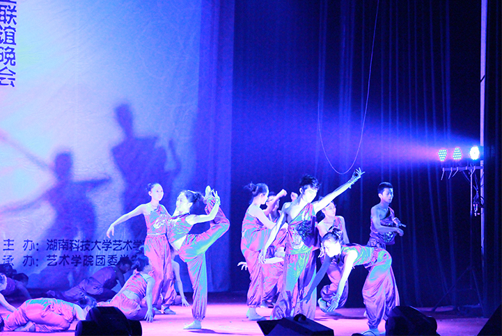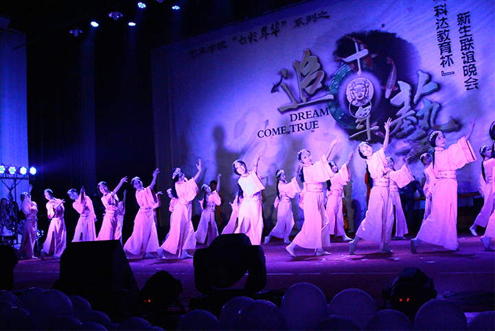 在大家期待的目光中,四位主持人宣布晚会由四个篇章组成:“序•追艺之歌”、“起•古风之美”,“扬•变奏现代”“尾•华年彩梦”,四个篇章各自展现了艺术学院执着探求艺术的精神。本场晚会由喜气洋洋的民乐合奏开幕,从一开始就带来一种欢快愉悦的氛围。晚会的节目一个接一个地呈现在观众们的眼前,本次晚会节目内容非常丰富,除了传统的歌曲、舞蹈、乐器外,更有独特的人声伴奏阿卡贝拉和T台环保服装走秀,这不仅充分体现了我院同学们对专业知识的掌握和灵活的运用,更体现了对艺术和生活的那一份热爱。其中的爵士热舞,歌曲联唱和街舞表演更是使本次晚会达到了一又一个的高潮,同学们热情澎湃,兴致高涨,叫好声此起彼伏。表演者们身心投入,为本次晚会带来了完美的视听盛宴。