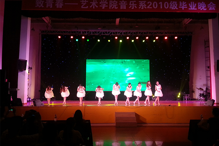 音乐系2010届全体同学用歌声和舞蹈抒发了对学校、老师们的感恩以及对未来的希冀。器乐合奏《自由》拉开晚会序幕。唯美的白裙摆,梦幻的和声《山楂树》充斥着青春的美好与离别的微殇。爵士舞《Work bitch》热辣四射,动感十足,掀起了晚会的第一个高潮。中外经典歌曲联唱宛转悠扬,民间舞《一抹红》独具风情。阿卡贝拉合唱《栀子花开》白T恤,牛仔裤俏皮可爱。诗歌剧《在一起,再出发》道尽不舍。男子群舞《狼图腾》用令人震撼的舞蹈演绎了狼的一生。流行歌曲联唱、现代舞《Let it go》将青春岁月的喜怒哀乐、悲欢离合展现得淋漓尽致,引起广大同学的强烈共鸣。防空警报乐队的出场再次掀起晚会高潮,团队默契的配合以及两位主唱不凡的实力引得现场观众一阵阵欢呼。歌伴舞《Time to say good bye》以深情的歌声追溯在校四年光阴的点点滴滴,表达了对老师同学的不舍以及对美好未来的畅想。最后,晚会在全体10级毕业生大合唱《光阴的故事》的歌声中圆满落幕。