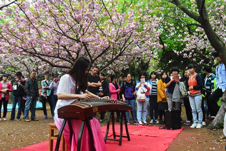 与此同时,我院志愿者们纷纷换装上阵,为游人们带来了一场精彩的音乐表演,在琴瑟合鸣之下绘就了一幅春日雅韵图,吸引者了众多游客驻足观赏。