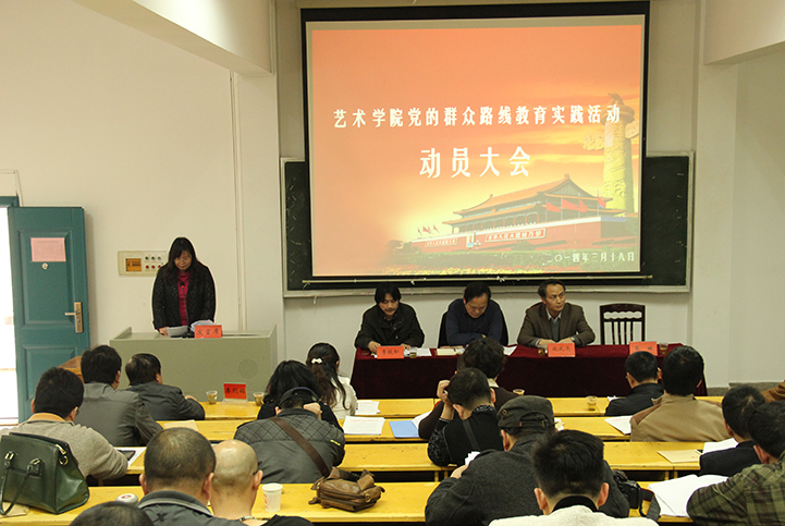 3月18日,我院于美术楼119召开党的群众路线教育实践活动动员大会。我院全体教职党员、学生党员参加了大会,副校长施式亮、校督查组组长谢政才及组员等到会指导。会议由院长李毅松主持。