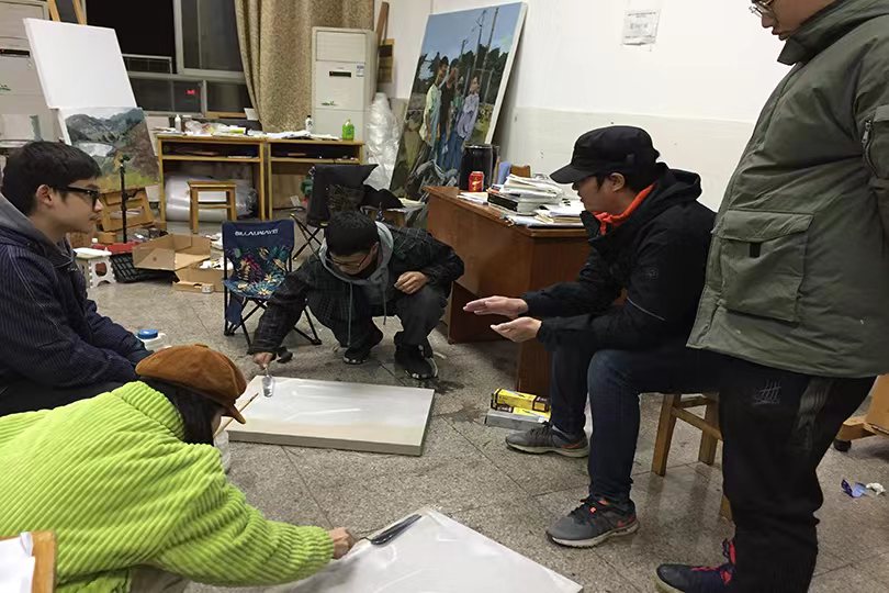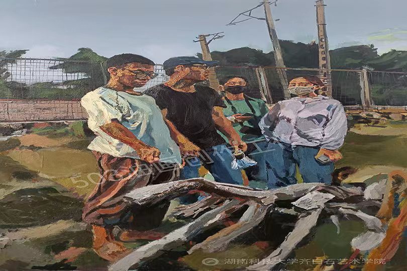 据悉,三位同学均来自于“503油画创作工作室”,该工作室是我院为满足一群热爱艺术的学生对油画创作学习的愿望与诉求,于2019年在唐亮老师的带领下组建的油画课外学习兴趣小组。三位同学作为503油画创作工作室的成员,展现了对油画创作的强烈热爱,在他们的学习生活中,几乎将所有课余时间都用于油画创作研究。为了激发创作灵感,他们不断深入城郊村镇、实验室、公共教育场馆等搜集素材,并在唐亮老师的指导下进行创作实践。为了提升创作能力及画面效果,他们仔细研究画面构成,反复揣摩用笔用色,深入刻画精微细节,历时数月才将作品完成,并于4月份入围本次展览复评。在拿到复评资格后,三位同学又在唐亮老师的指导下,对作品进行了仔细推敲和反复修改,着力于进一步深入探究作品的可读性,努力完善作品的绘画性,深刻提炼作品的主题性,最终在复评中脱颖而出,斩获佳绩。