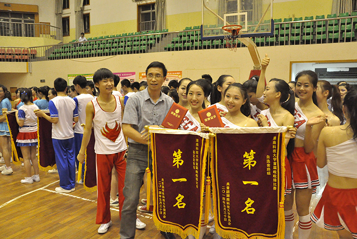 晚上七点比赛正式开始。动感十足的音乐,完美的动作,夺目的造型以及选手们自信的笑容赢得了评委和观众们的阵阵掌声。最终我院以近乎完美的表现夺得了自选套路组和规定套路组的“双第一”。
