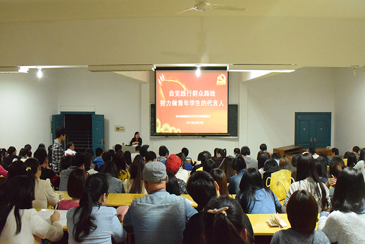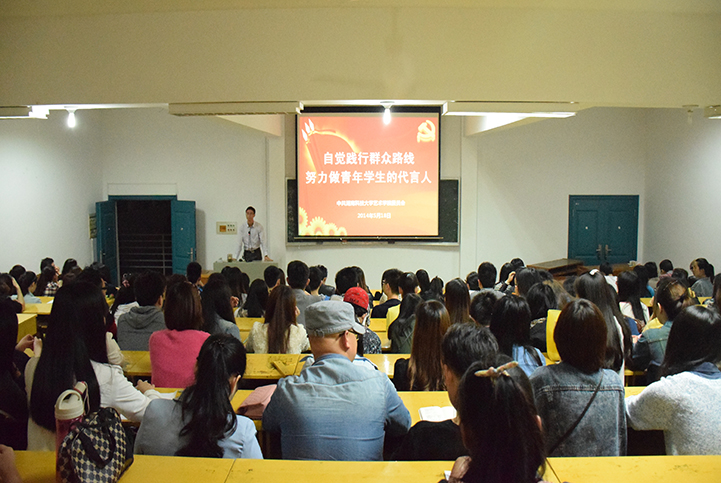 5月18日晚7点30分,以“自觉践行群众路线,努力做青年学生的代言人”为主题的学生党员学习大会在美术楼119教室进行。院党委书记张琳同志出席并给全体学生党员上党课,会议由我院党委副书记罗登辉主持。