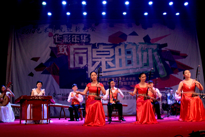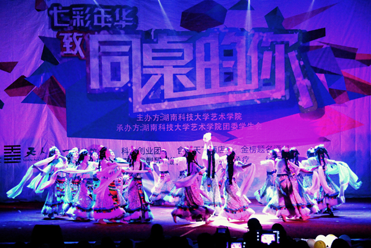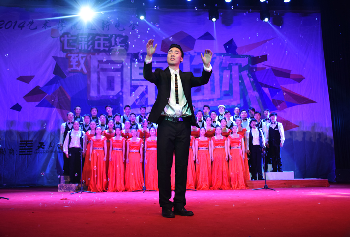 10月15日晚,我院2014级“天人合一·七彩年华致同桌的你”迎新晚会在我校南区俱乐部隆重举行。副校长刘友金、施式亮、正校级督导曹晨忠、校党委宣传部部长何频、学生工作处处长李红革、湘潭市文联党组书记陈志光、艺术学院党委书记张琳、副院长李毅松、邹正洪、尹建国、熊晓辉以及艺术学院党委副书记罗登辉出席了本台晚会,参加晚会的还有湘潭市文联、湘潭市财政局、湘潭市电视台、学校各机关处室和各学院的老师。 本次晚会在防空警报乐队动感激扬的旋律中正式拉开了序幕。绚丽多彩的舞蹈,饱含深情的歌唱,舞起乐鸣,各节目在掌声中轮番登场。清脆嘹亮的《红旗颂》与一曲曲脍炙人口的流行歌曲演唱,都展示了我院同学扎实专业的唱功。不仅如此,舞蹈类节目同样震撼人心。女子群舞《金陵十三钗》颇获好评,将电影的画面还原到舞台,极富张力的表演把音乐与舞蹈相融合,感染力十足。随着枪响,演员倒地,悲伤之感油然而生,撼动着观众的灵魂,舞蹈结束,余韵犹在。紧接着的齐舞《红蓝军》用英姿飒爽,干净利落的舞姿体现了刚毅的军人气质,让我们看到了军旅生活的艰辛和中国军队的无所畏惧,更是将现场氛围推至高潮。小合奏《幽灵公主》把轻柔的钢琴,悠扬的小提琴,空灵的古筝,古朴的二胡完美的融合在一起仿佛在跟我们诉说幽灵公主的悲伤,扣人心弦。值得一提的还有本次晚会的特别节目—微博抽奖。我院独创的微博墙使同学们更好的参与到本次晚会。我们的压轴大合唱曲《大漠之夜》,在男女声低沉的哼唱中用空灵的歌声为观众呈现了在无边沙漠夜晚,描绘出宁静、苍凉而又壮美的画卷,展现了时代精神和民族风貌,体现了团结协作之重要,具有深刻的含义。歌舞结合,演绎了一个青春洋溢的舞台,上演了一场激情荡漾的盛会,留下了一次震颤心灵的回忆。 本次迎新晚会充分展示了我院学生的风彩与活力,同时也展现出我院学生之间浓厚的同窗情谊与集体精神。 (文/李慧瑶 李心如 图/周孜琦 伦可莹 吉孝涛)