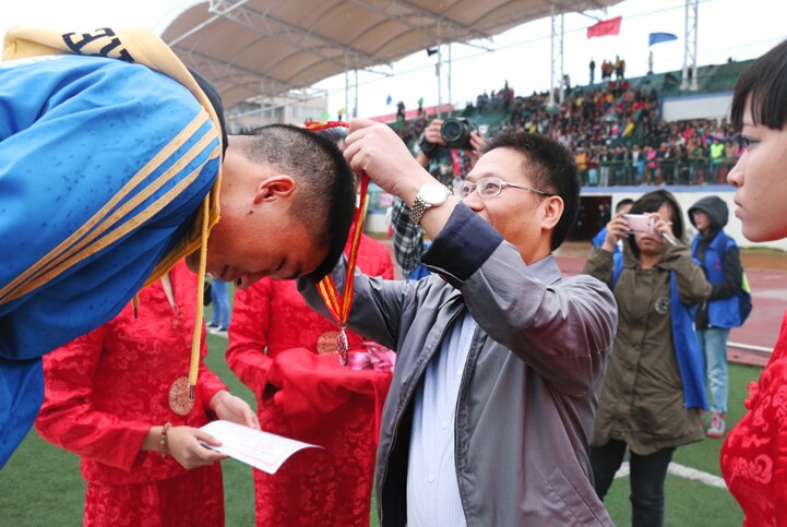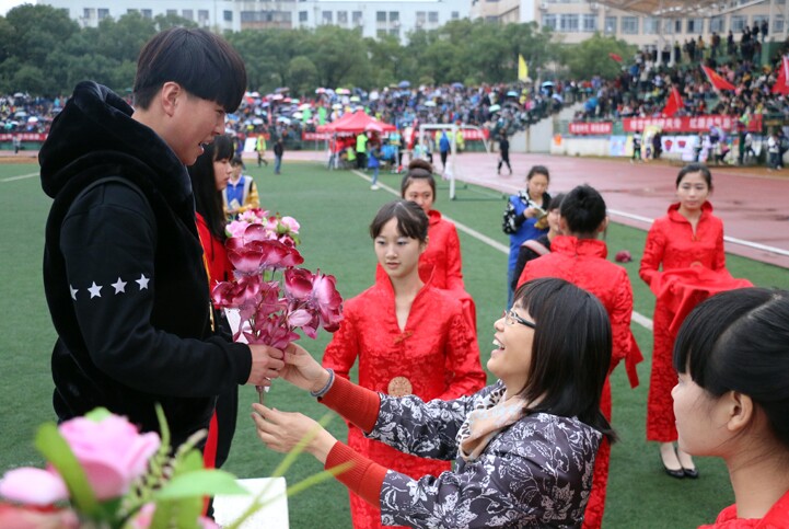 最后,由校党委副书记朱川曲教授致闭幕词,朱川曲副书记先是对获奖团体及个人表示祝贺,同时也感谢三天来的每个工作人员的付出和努力,并且对此次体育比赛中展现出来的团队协作、超越自我和更高、更强的的体育精神给予了高度的评价。此次运动会展示了我校师生较高的体育运动水平,并希望同学们将赛场上顽强拼搏的精神在今后的学习中加以见证。