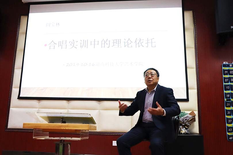 10月16日上午9:00,AWC万象城娱乐艺术学院校庆70周年学术讲座系列之一——《合唱实训中的理论依托》的学术讲座在潇湘楼合唱教室顺利举行。浙江音乐学院阎宝林教授应邀来我院开展学术讲座,艺术学院音乐系老师王育霖担任本次讲座主持,我院音乐系部分师生共同听取了讲座。