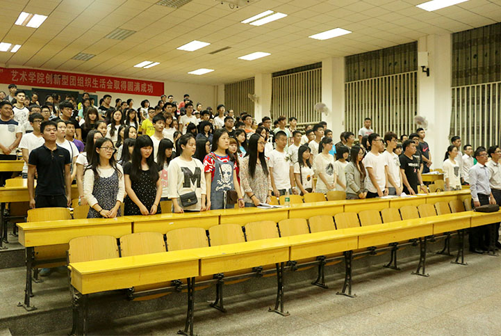 成立大会由我院第一团委副书记刘倩蓉同学主持。首先全体起立,共唱《中国共青团团歌》。随后,我院党委副书记罗登辉老师就艺术学院团学工作发言,对学员标准、学员日常管理细则、学员考评细则以及团支部考评标准提出了要求,让同学们明确标准更好的规范自己。之后,校团委书记尹风雨为团校授牌。