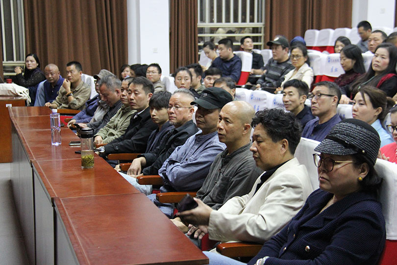 讲座伊始,李毅松首先对主讲人曾翔作出简要介绍。会上,曾翔向大家讲述了他创作过程中的诸多经历,他强调艺术在乐趣中诞生,主张随性的艺术形式。接着,曾翔从远古艺术出发,讲述他对艺术创作的理解,他认为艺术创作者应该拥有一双发现智慧的眼睛,善于发现生活中最质朴的艺术,并建议当代人应该学习古人的智慧与创造能力。随后他分析了古代书法大家王羲之等人的作品,强调艺术创作应从多方位观察、突出重围,主张艺术创作不受传统观念的限制,同时希望艺术工作者学会打破格局、打破陈旧观念,应“反其道而行”。