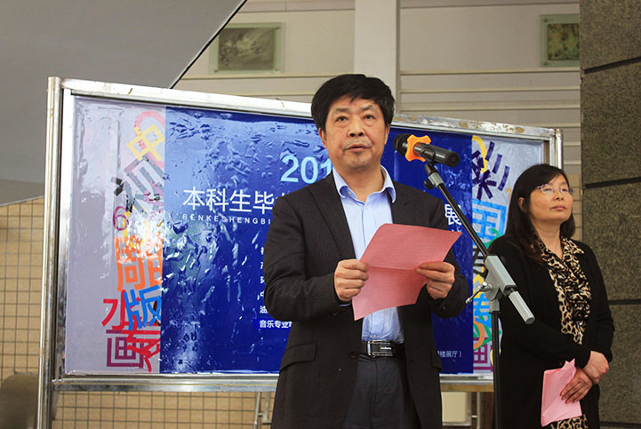开幕式由学院党委书记张琳主持,李毅松院长为开幕式致辞。李院长表示本届毕业展不仅是我院这几年教学成果的展示,也是对我们多年来教学的回顾和思考,希望2016届的准毕业生们把毕业展当成毕业前的一次学习,也希望他们走向社会,走向新的人生历程的路上能够继续深入创作,“千里之行,始于足下。”副校长周飞跃上台致词并充分肯定了近年来艺术学院在学科建设、专业发展、人才培养方面取得的突出成绩。他希望2016届毕业生能从学院艺术走向社会艺术、走向当代艺术,在实践中完成蜕变和超越,在理论的升华中走向辉煌。
