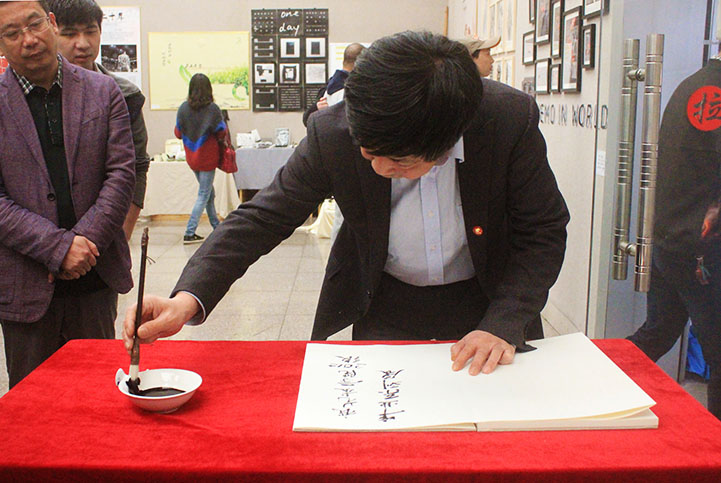 5月9日下午三点整,2016届本科毕业创作与设计作品展开幕式于美术楼大厅举办,我校副校长周飞跃、教务处副处长陈秋南、潇湘学院院长郭迎福、我院院长李毅松、党委书记张琳、副院长熊晓辉以及我院各系主任,指导老师一同出席了本次展览开幕式。