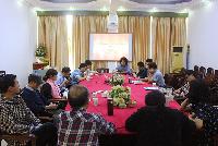 “尊重教师、礼拜教学”,5月17日下午,艺术学院在美术楼203召开2015-2016第二学期教学工作会议。此次会议主要是学院总结1-11周的教学工作、听取各位老师对教学工作的意见与建议,并对下一阶段的教学工作进行布置。会议由主管教学的副院长熊晓辉主持,院长李毅松,副院长邹正洪、院党委副书记罗登辉出席了此次会议,三办一室主任、各教学系系主任和教师代表参加了此次会议。