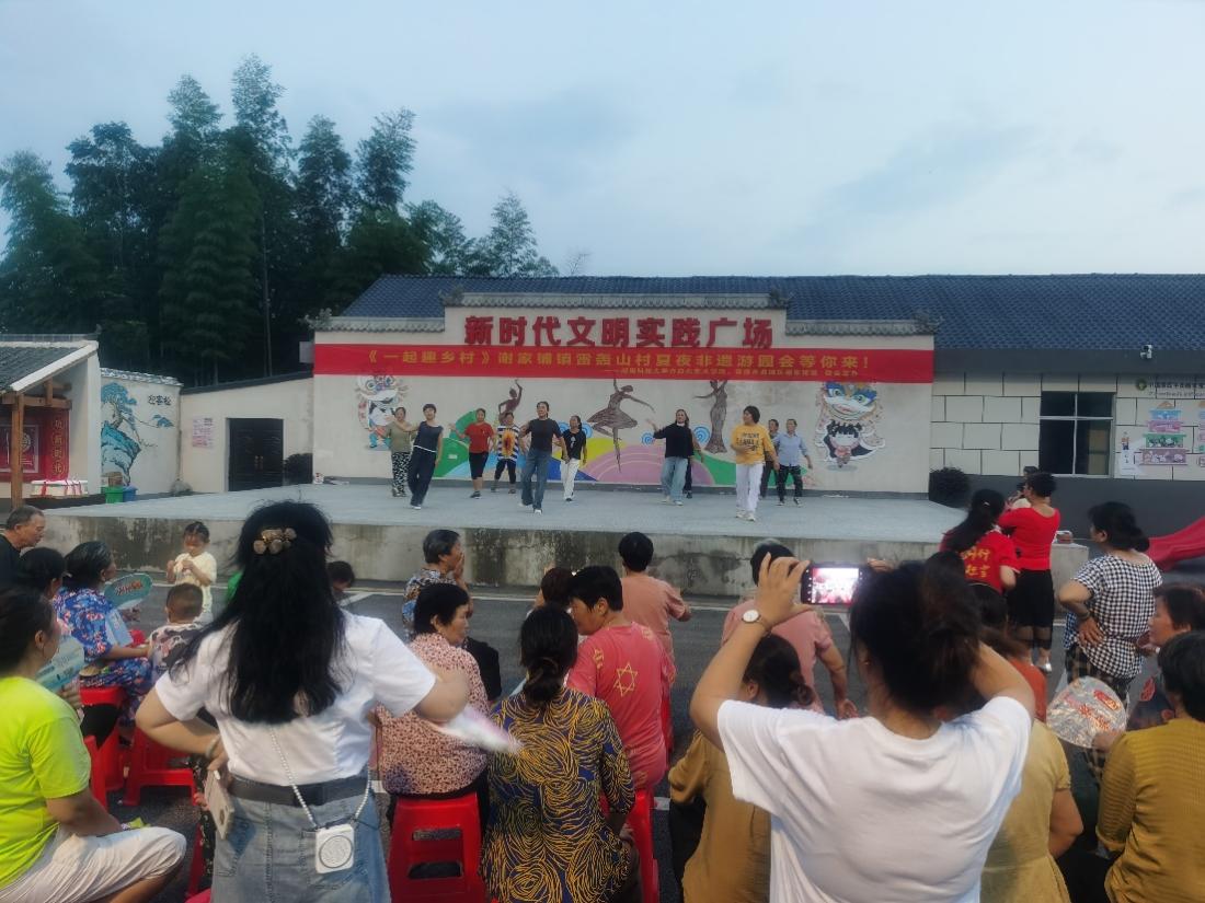 入夜后的雷轰山村小广场化身文化展示大舞台,一场“和美乡村夏夜非遗游园会”在村民们一段激情欢快的广场舞中拉开序幕,村民们一边喝着清爽消暑的饮料,一边欣赏着大学生实践团集体热情洋溢的唱跳表演。活动现场,大学生实践团精心策划为当月过生日的留守儿童举办了一场温馨的生日派对,在大手拉小手的欢快舞蹈中,和小小寿星们一起唱生日祝福歌,分享甜蜜的大蛋糕。在非遗游园漆扇体验区,吸引着众多村民亲手感受传统工艺的精妙与匠心独运,一把把精致细腻的漆扇在灯光下闪耀着东方雅韵;纸影制作台前,在实践团成员的细致指导下一个个生动的角色在孩子们的手中舞动,古老的艺术在他们手中焕发新生;手绘糖画,一丝丝入口的香甜,唤起了儿时的记忆;石膏彩绘,用创意描绘美好时光。每一份作品都承载着村民们的创意与梦想,让这个夏夜充满了甜蜜与温馨。本次非遗游园会不仅是一场文化秀,更是一次人与人心灵的交流与情感的凝聚。