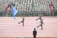 军训汇报表演中各学院方阵代表队在主持人介绍下逐一入场,我院方阵代表队以飒爽的英姿、饱满的精神获得了全场掌声。铿锵的步伐是我们的默契与汗水,坚定的眼神是我们的信心与骄傲。