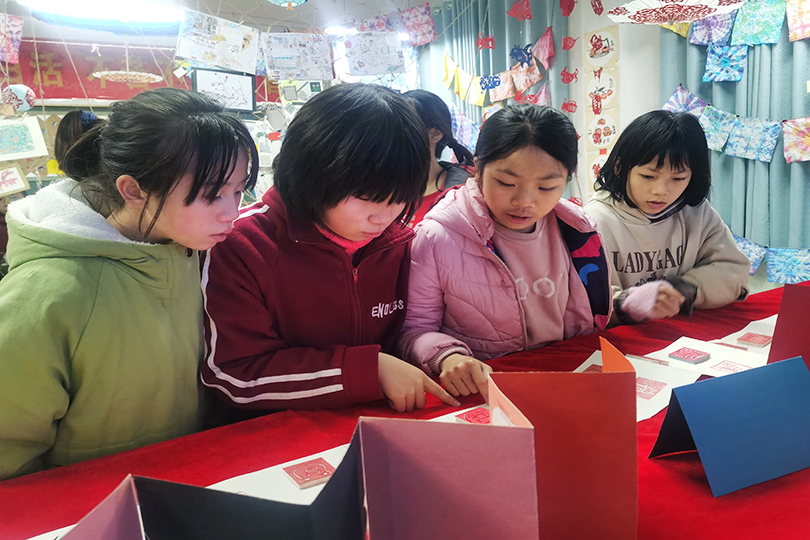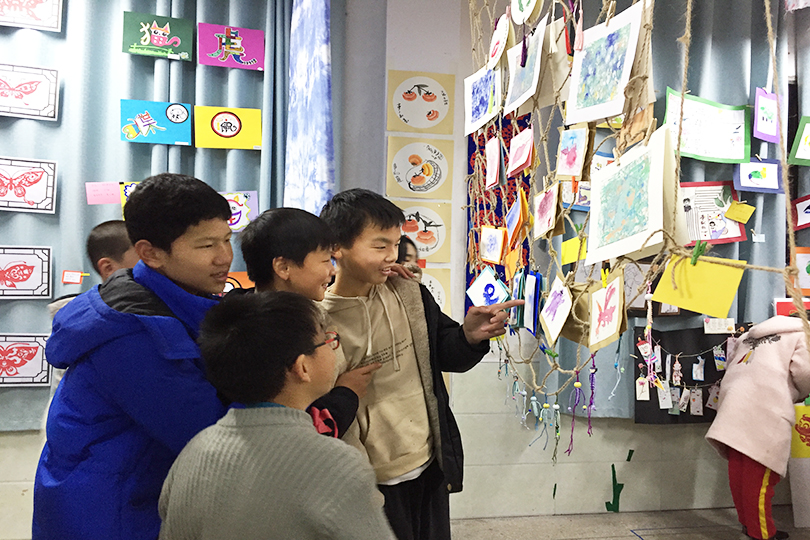 展览集中展示了2017级美术学专业在启航学校官家嘴校区18位实习生的教学成果,分为创意美术课程和非遗校本课程两大板块,涵盖国画、水彩、手工、设计、篆刻、装置等多种形式,包括民间剪纸、踏虎凿花、扎染、苗画等多种非遗文化。作品形式多样,内容丰富,每一幅作品都充满了灵性,既抒发了留守儿童的真情实感,也增强了他们的自信心。在美术教育实习中,通过一系列非遗进校园的活动,让中小学生感受非遗文化的独特魅力,从而增强他们热爱祖国以及传承并弘扬中华优秀传统文化的意识。
